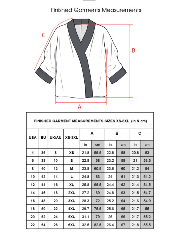 Craft your own stylish and comfortable kimono or jacket with this versatile sewing pattern, available in sizes XS-6XL. This pattern block is designed for woven fabrics with little or no stretch, offering an excellent fit for a wide range of body types. Whether you’re a beginner or an advanced sewer, this pattern is perfect for creating elegant overgarments like kimonos or jackets for casual or formal occasions.