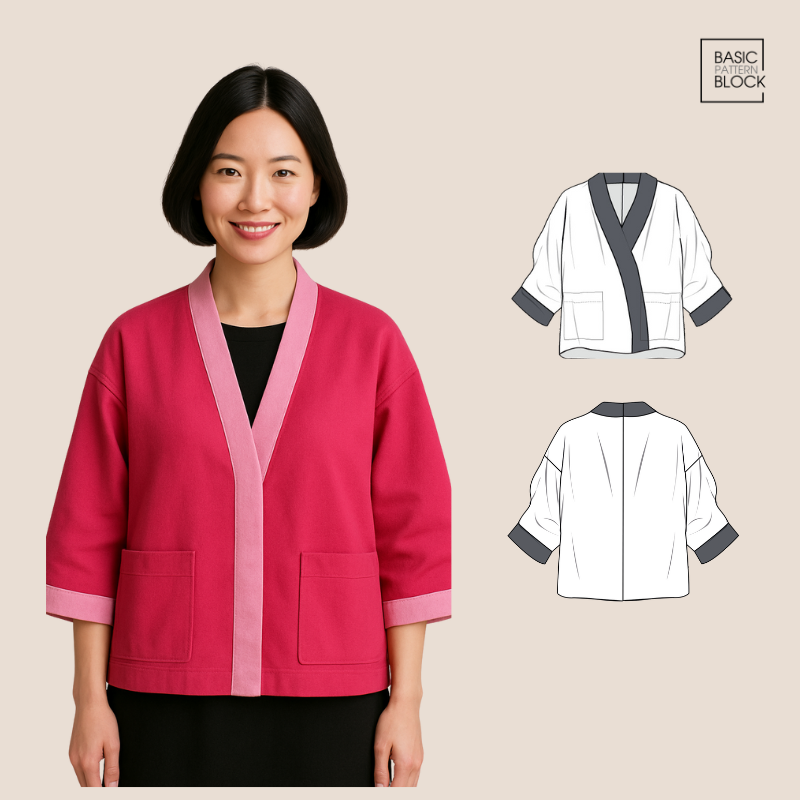 This pattern block includes all the essential pieces needed to create a custom-fit kimono or jacket: