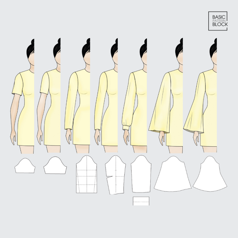 This pack is for WOVEN fabrics and includes 7 type of basic sleeves:
